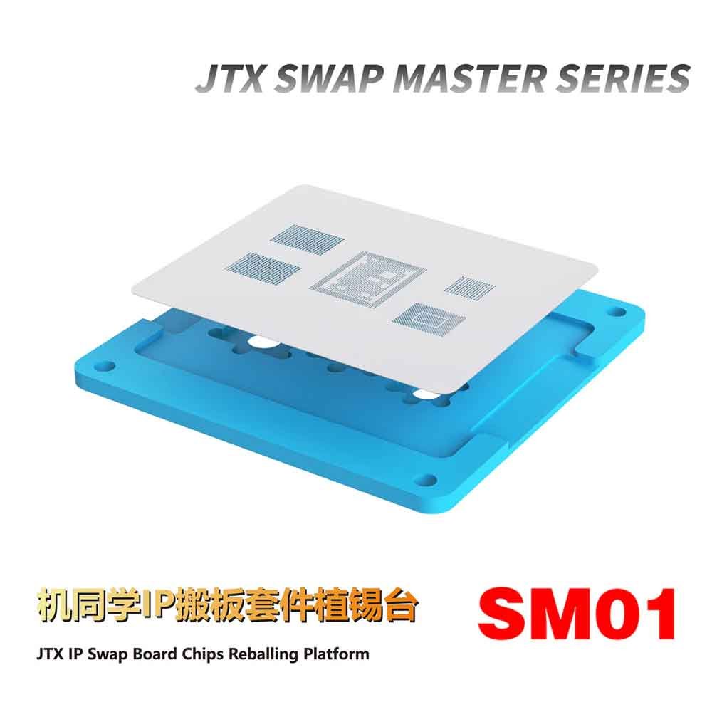 The JTX SM-01 Swap Board Chips BGA Reballing Stencil Platform Set is a professional repair tool designed for accurate chip reballing and motherboard swap repairs for iPhone 8 to iPhone 16 Pro Max. This advanced stencil platform allows technicians to perform precise BGA chip reballing, CPU swaps, NAND repair, and motherboard-level maintenance with improved stability and efficiency.