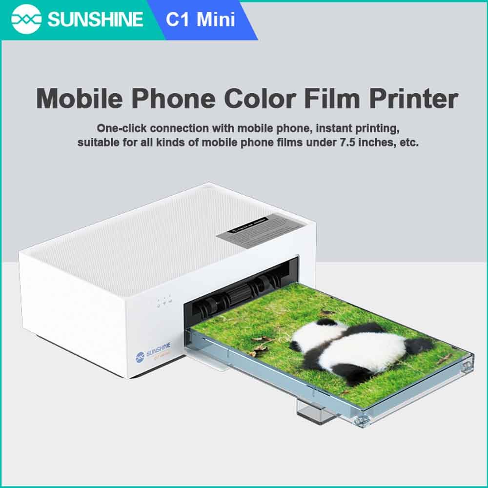 The Sunshine C1 Mini Mobile Phone Color Film Printer is a professional device designed for printing customized mobile phone back films and protective skins quickly and efficiently. This compact printer allows technicians and shop owners to create high-quality color films for smartphones on demand, making it ideal for mobile repair shops, accessory stores, and customization businesses.